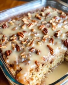 Butter Pecan Praline Poke Cake Recipe is a rich, sweet, and comforting dessert that brings together soft cake, buttery sauce, and crunchy pecans in every bite. This cake is called a poke cake because you poke holes into the baked cake and pour a delicious sweet mixture over it so the flavor goes deep inside. The result is a moist, creamy, and flavorful cake that tastes like it came from a bakery, but it is very easy to make at home. Even if you are new to baking, you can follow this recipe without stress. The steps are simple and the ingredients are easy to find in most grocery stores. This is the kind of dessert that looks impressive but needs very basic kitchen skills.