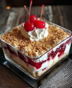One big reason why people absolutely adore this specific dessert is the incredible balance of flavors that it offers in every bite. Most people find traditional cheesecake to be a bit too heavy or dense to eat a large portion of but this trifle version solves that problem by using whipped cream to lighten the entire structure. The sweetness of the cake layers is perfectly balanced by the slight tang of the cream cheese and the natural tartness of the cherries which keeps the dish from feeling overwhelming. It is also a very nostalgic dessert for many families because it reminds them of summer picnics and holiday gatherings where large bowls of sweets were shared among loved ones. The crunch of the graham crackers or the softness of the pound cake provides a variety of textures that keep your taste buds excited from the first bite to the very last one. Because it is served cold it feels very refreshing and light which makes it a top choice for people who want a satisfying treat that does not leave them feeling sluggish afterward.