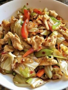 This incredible dish is a classic example of how simple ingredients can transform into a masterpiece of flavor and texture with just a little heat and the right timing. When you think about Chinese home cooking, this stir fry is exactly what comes to mind because it balances juicy protein with crisp vegetables in a way that feels both indulgent and incredibly light at the same time. The recipe focuses on thin slices of tender chicken breast paired with shredded cabbage that soaks up a savory sauce made from soy and ginger and garlic. It is the kind of meal that fills your kitchen with an amazing aroma that makes everyone run to the dinner table before you even finish plating the food. You will find that the magic lies in the high heat of the pan which creates a slight char on the cabbage while keeping the chicken moist and succulent for every single bite you take.