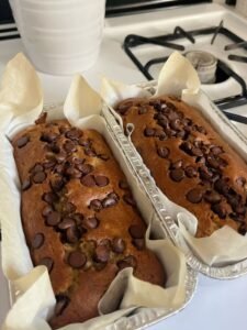 Slice and serve when slightly warm or fully cool. Enjoy your homemade chocolate chip banana bread.