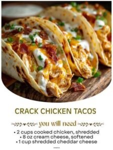 When you think about the perfect meal for a busy family night or a fun gathering with your closest friends you probably want something that is both incredibly delicious and very easy to prepare. This recipe for Crack Chicken Tacos is exactly that kind of meal because it combines the most beloved flavors of creamy cheese and savory ranch with the salty crunch of bacon. The term crack chicken has become a sensation in the world of home cooking because it refers to a dish that is so tasty and so addictive that people simply cannot stop eating it after just one bite. It is a wonderful blend of shredded chicken breast cooked until it is perfectly tender and then mixed with a rich base of cream cheese and cheddar cheese. The addition of ranch seasoning gives it a tangy kick that ties all the heavy flavors together while the bits of crispy bacon add a smoky layer that makes every single mouthful feel like a celebration of comfort food. Making these tacos means you are bringing a restaurant quality experience right into your own kitchen without needing any professional chef skills or expensive equipment which is why so many people are falling in love with this specific way of cooking chicken today.