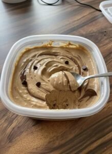These ingredients create a smooth and balanced ice cream flavor. The cream adds richness, the cocoa gives chocolate taste, and peanut butter creates the nutty creamy texture that makes this dessert unique.