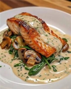 People absolutely love this recipe because it strikes a perfect balance between being a comfort food and being a light and healthy meal that does not leave you feeling heavy. The combination of salmon with a creamy sauce is a classic choice in many parts of the world because the natural oils in the fish pair so well with the richness of the dairy. Mushrooms add a wonderful meaty texture and a savory taste that chefs often call umami which helps to make the dish feel more filling and satisfying without adding too many calories. Spinach is another star of this show because it wilts down into the sauce and provides a beautiful pop of bright green color that makes the plate look vibrant and professional. Many people also enjoy this recipe because it is very versatile and can be served alongside many different side dishes like fluffy white rice or buttery mashed potatoes or even just a simple piece of crusty bread to soak up all that extra sauce. It has become a favorite for busy parents who want to give their children a nutritious meal that actually tastes delicious and for couples who want to enjoy a romantic dinner at home without spending hours and hours standing over a hot stove.