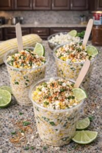 Making creamy Mexican street corn cups is a rewarding experience that brings a lot of flavor and fun to your table. This recipe is designed to be easy for anyone to follow whether you are a beginner in the kitchen or an experienced cook looking for a quick and reliable dish. The combination of sweet corn and creamy dressing and bold spices is something that truly appeals to everyone. I hope you enjoy the process of cooking this as much as you enjoy eating it with your friends and family. It is a dish that reminds us that food is meant to be enjoyed and shared with others in a spirit of happiness. Thank you for taking the time to learn this recipe and I am sure it will become a new favorite in your household.