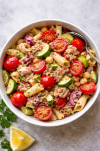 This recipe is all about making a fresh and filling salad using tuna and beans. It is simple to prepare and does not need cooking on the stove. The salad uses basic ingredients that many people already have at home. Tuna gives strong flavor and beans give a soft and hearty texture. When mixed together with vegetables and a light dressing, it becomes a full meal in one bowl. This recipe is perfect for people who want healthy food without spending too much time in the kitchen.