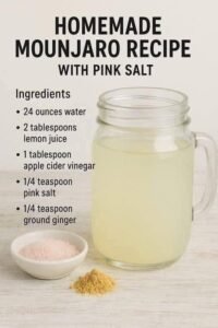 The homemade “Mounjaro” drink with pink salt is a simple and refreshing beverage that many people enjoy as part of their daily wellness routine. It uses natural ingredients that are easy to find and takes only a few minutes to prepare. The combination of lemon juice, apple cider vinegar, ginger, and pink salt creates a unique flavor that is both tangy and refreshing.