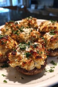 People love crab stuffed mushrooms because they are small, tasty, and perfect for sharing. They work great as party snacks, family starters, or even as a light main dish with salad on the side. The texture is wonderful. The mushrooms become juicy and tender after baking, while the crab filling stays creamy and rich. When you serve them hot from the oven, they disappear very fast. Guests often ask for the recipe because they cannot believe something this good can be made so simply at home.