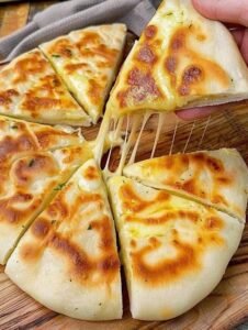 16. Use a sharp knife or a pizza cutter to divide the bread into squares or wedges and serve it while it is still warm and the cheese is gooey.