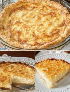 Sprinkle the remaining half cup of shredded coconut over the very top of the pie. This will create that beautiful toasted crust as the pie bakes in the oven heat.