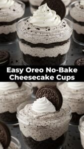 Welcome to the world of easy desserts where we make something truly magical without ever turning on the oven. The Oreo no bake cheesecake cup is a dessert that brings together the classic crunch of a chocolate cookie with the smooth and velvet texture of a rich cream cheese filling. This recipe is all about layers because you get a thick and buttery cookie base followed by a fluffy cloud of sweetened cheese and then even more cookie pieces mixed inside for a double dose of flavor. It is the kind of treat that looks like it came from a fancy bakery but in reality you can whip it up in your own kitchen with just a few simple tools and some basic ingredients. Many people feel intimidated by the idea of making a cheesecake because traditional versions require a water bath and very careful temperature control but this version removes all those stressful steps and leaves you with pure joy. Each cup is a perfect single serving which makes it very convenient for serving guests or just keeping a secret stash in your fridge for when you need a sweet pick me up.