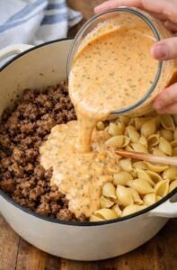 Making a big pot of pasta shells with ground beef is one of the best things you can do for your family when you want a meal that feels like a warm hug. This recipe is all about simple ingredients coming together to create a flavor that everyone knows and loves from their childhood. You take medium sized pasta shells and cook them until they are just right then mix them with savory ground beef and a rich tomato sauce that coats every single curve of the pasta. Many people call this a homemade version of hamburger helper but it tastes so much better because you control every single thing that goes into the pot. It is a hearty meal that fills your stomach and makes your house smell like a professional kitchen without requiring you to spend hours standing over a hot stove. You will find that the texture of the shells is perfect for holding onto bits of meat and sauce which means every bite you take is packed with a lot of balanced flavor.