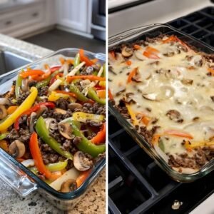 Philly cheesesteak casserole is a warm, cheesy, and satisfying dish inspired by the famous sandwich from Philadelphia. Instead of placing the meat and cheese inside bread, everything is baked together in one comforting casserole. This recipe mixes tender beef, melted cheese, sweet peppers, and tasty onions into a dish that feels rich and homemade. Many people love meals like this because they are easy to prepare and perfect for sharing with family or friends. When the casserole comes out of the oven, the smell alone makes everyone excited to eat.
