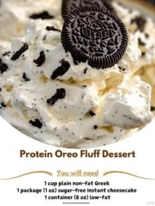 When you think about the perfect snack or a delicious dessert that does not ruin your fitness progress you might find it hard to choose something satisfying. Many people struggle to find a balance between eating healthy foods and enjoying the flavors they truly love. This Protein Oreo Fluff Recipe is the ultimate solution for anyone who wants a sweet treat that is also packed with muscle building protein. It is a thick and creamy dish that reminds you of the filling inside a cookie but with a much lighter and airier texture that feels like eating a cloud. The recipe is about taking simple everyday ingredients and turning them into a high volume snack that can satisfy even the strongest sugar cravings. It is designed for the modern person who is busy but still cares about what they put into their body every single day. You do not need any special skills or fancy equipment to make this work because it is all about the joy of mixing things together. This fluff is famous in the fitness community because it allows you to eat a giant bowl of food for very few calories while getting all the protein you need to stay strong. It is truly a magical transformation of standard protein powder into something that tastes like a gourmet dessert from a high end cafe.