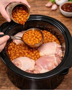 This recipe is special because it provides a massive amount of flavor and nutrition using very few steps and affordable ingredients. Chicken thighs are a great source of high quality protein and essential minerals like iron and zinc which are important for your blood and energy levels. Baked beans are a secret weapon in the kitchen because they are loaded with dietary fiber and plant based protein which helps you stay full for a long time after your meal. By slow cooking the meat with the beans you are allowing the flavors to marry together in a way that is much deeper than if you just cooked them separately on a stove. It is a very forgiving recipe which means that even if you leave it in the slow cooker for an extra hour the chicken will still be delicious and moist. This recipe is also special because it is a true one pot meal which means you will have very few dishes to wash at the end of the night. It proves that you can serve a hearty and healthy dinner to your family without having to be a professional chef or spend your whole evening in the kitchen.