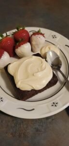 From a health point of view, you can adjust the sugar and butter to make it a little healthier. Using fresh strawberries adds vitamins and antioxidants. The brownies provide energy and a mood boost without feeling too heavy. It is a perfect dessert when you want to enjoy a treat but still feel good about what you eat.